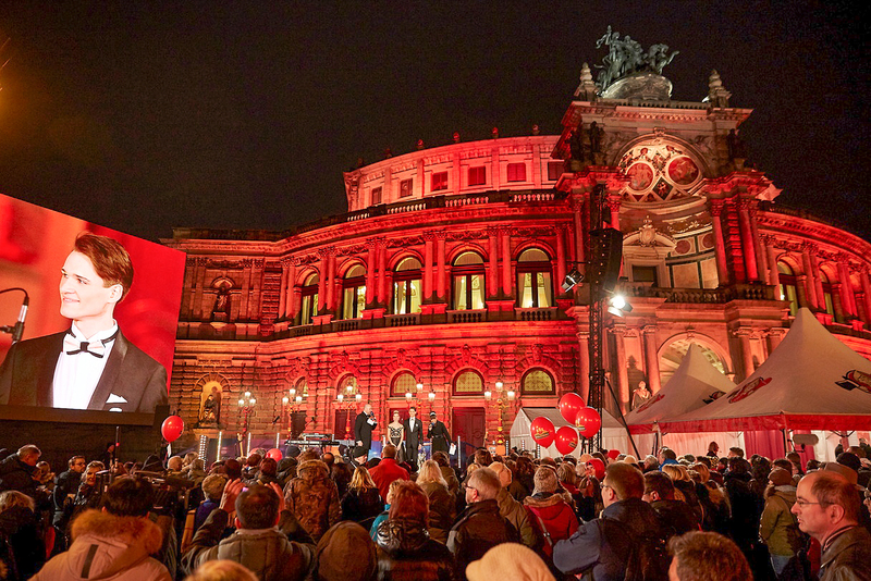 Зрители смогут увидеть наиболее красивые моменты, звездных гостей, послушать исполнение шедевров классической музыки и выступления знаменитых исполнителей. Так, перед гостями выступили пианист Денис Мацуев, дирижер Дмитрий Юровский, оперная звезда Диана Дамрау, а также «король вальса» – скрипач и дирижер Андре Рье. Симфонический оркестр Саксонской государственной капеллы сыграл произведения великих русских композиторов – Чайковского, Шостаковича. В программе бала также прозвучала сюита для большого симфонического оркестра «Праздничная музыка для Дрездена № 2» композитора Антона Лубченко – автора музыки к ленфильмовской картине «Три дня до весны».