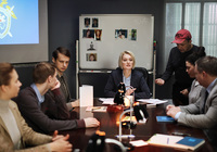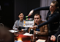 В первом павильоне киностудии «Ленфильм» закончились съемки сериала кинокомпании «Профит» для Первого канала «Неженское дело» режиссера Максима Пежемского.