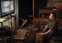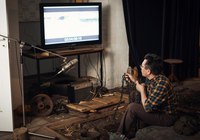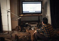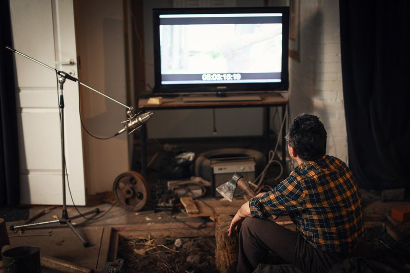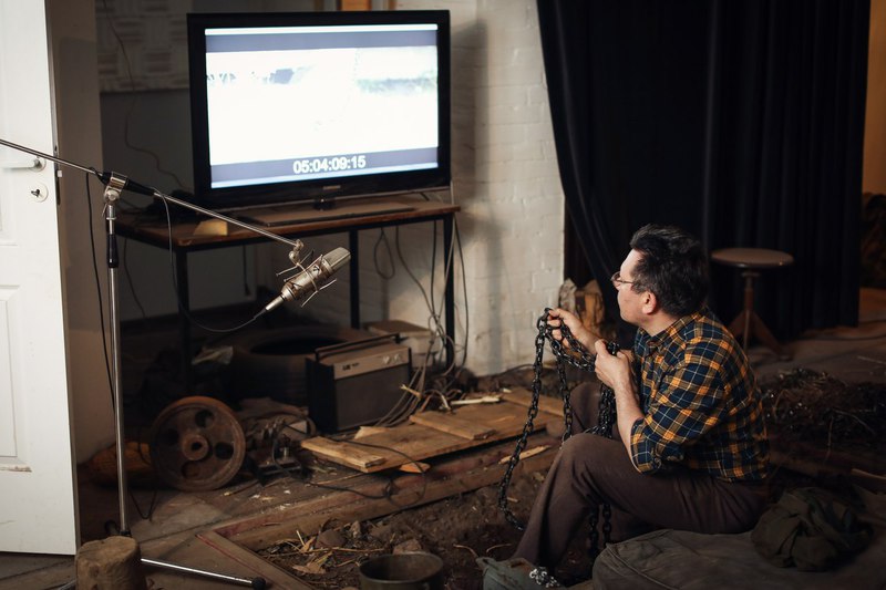 На участке звукового озвучания выделяется аккуратно вырезанная в полу дырка. В ней лежат иголки, веточки, пленка. «Это лес, по которому в фильме ходят герои. Добавим усеченной бумаги, магнитофонной пленки и будет не отличить от настоящего хруста веток и треска мха под ногами», – улыбается Сергей.