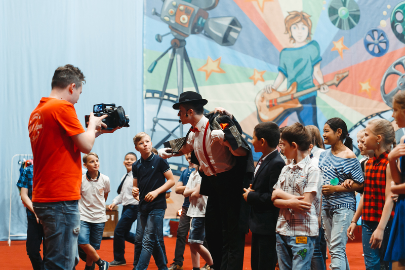Программа такого мероприятия индивидуальна для каждого класса: интерактивный спектакль можно дополнить торжественной частью с вручением дипломов и памятных подарков, а также организовать чаепитие прямо в павильоне студии. Также в школьный «блокбастер» можно вставить поздравления от учителей, родителей и самих учеников.
