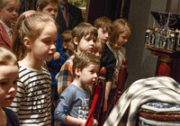 Их подарили воспитанники изостудии при Государственном Эрмитаже. Под руководством известного искусствоведа и заведующего секции «Изостудия» Бориса Константиновича Кравчунаса ребята весь апрель трудились над созданием афиш к легендарным фильмам: «Старик Хоттабыч», «Снежная королева», «Золушка», «Приключения Вити и Маши», «Человек –амфибия», «Полосатый рейс», Приключения Шерлока Холмса и доктора Ватсона». Юные художники великолепно справились с задачей: даже тем, кто смотрел эти картины не один десяток раз, захотелось пересмотреть их вновь.