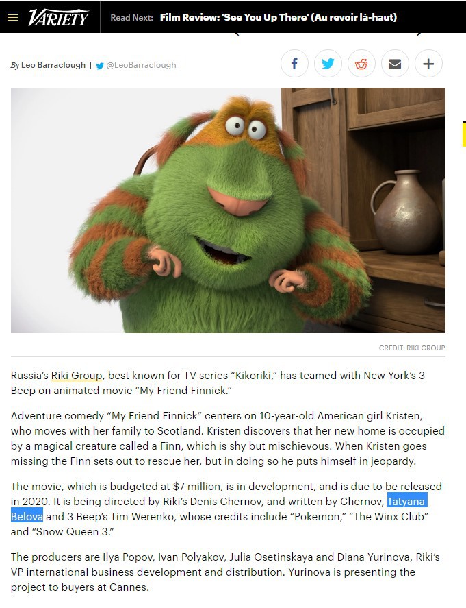 Выпускница курса «Питчинг для сценаристов» Учебного центра «Ленфильм» Татьяна Белова стала одним из победителей конкурса Фонда кино. Проект анимационного фильма по ее сценарию «Мой домовой» получил финансирование на безвозвратной основе. Преподавателем курсов «Питчинг для сценаристов» была Александра Радушинская.