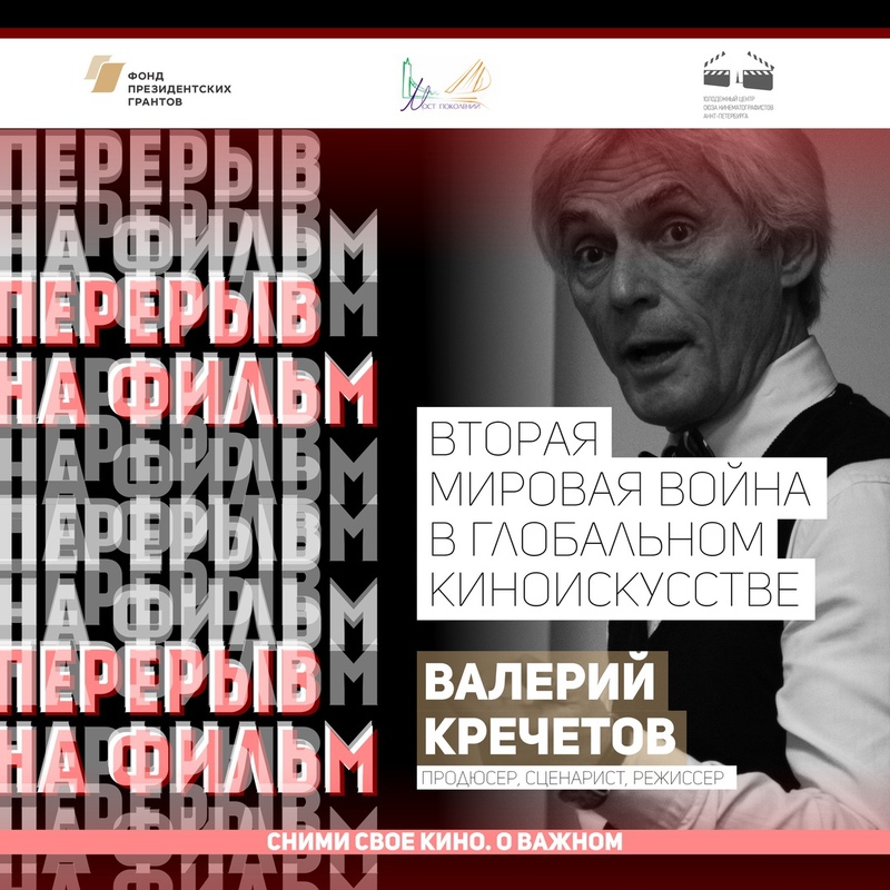 30 июня в 13:00 в директорском зале киностудии «Ленфильм» в рамках подведения итогов кинолектория «Перерыв на фильм» состоится тематическая авторская лекция Валерия Кречетова.