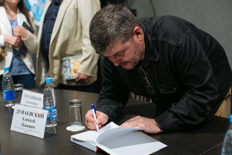 Знаменательных событий в мире кино и футбола оказалось настолько много, что киностудия предложила мне написать книгу. «Ленфильм» предоставил всю информацию, которая у него накопилась по фильмам. Благодаря Эдуарду Пичугину и команде «Ленфильма» я смог собрать много нового материала. И вот, наконец, мы может представить нашу книгу», – сказал Алексей Дунаевский на презентации.