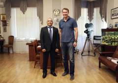 Генеральный директор «Ленфильма» Эдуард Пичугин показал гостю студию, рассказал о ее истории и возможностях для сотрудничества.