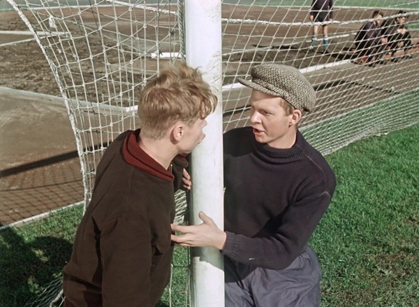 К чести мастеров комбинированных съемок, зритель и сегодня принимает эти сцены за чистую монету. Крупные планы сидящих на трибунах болельщиков доснимали уже на центральном ленинградском стадионе им. Кирова.
