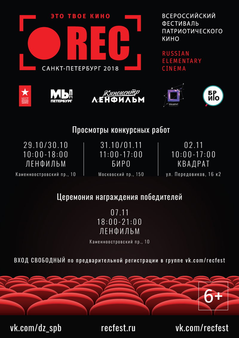 Всероссийский фестиваль патриотического кино «Russian Elementary Cinema» [REC] –визуальный проект, не первый год собирающий телевизионных журналистов, режиссеров, операторов, мастеров авторского кино, мультипликаторов и просто любителей кинематографического жанра.