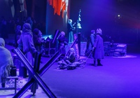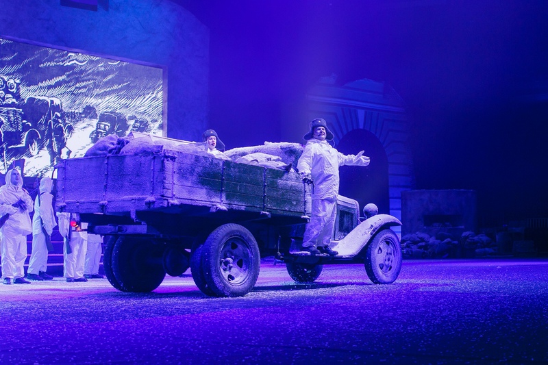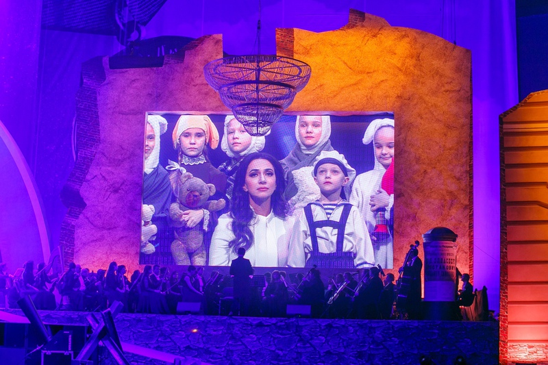 На сцене выступили Александр Маршал, Зара, Диана Арбенина, ансамбль Александрова, группа «Земляне» и другие. Зрители увидели узнаваемые символы обороны Ленинграда – полуторки, блокадный трамвай, а под куполом поднялся аэростат. Костюмы, военный реквизит: ежи, оружие, мебель, а также легендарную полуторку предоставила киностудия «Ленфильм».