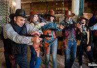 Специально для этой акции в четвертом павильоне воссоздали кусочек Дикого Запада и разыграли интерактивные сцены с участием каскадеров: рукопашные бои, эффектные трюки, среди которых выстрелы, взрывы и известные всем удары бутылкой по голове. Они никому не причиняют вреда, однако выглядят как настоящие!