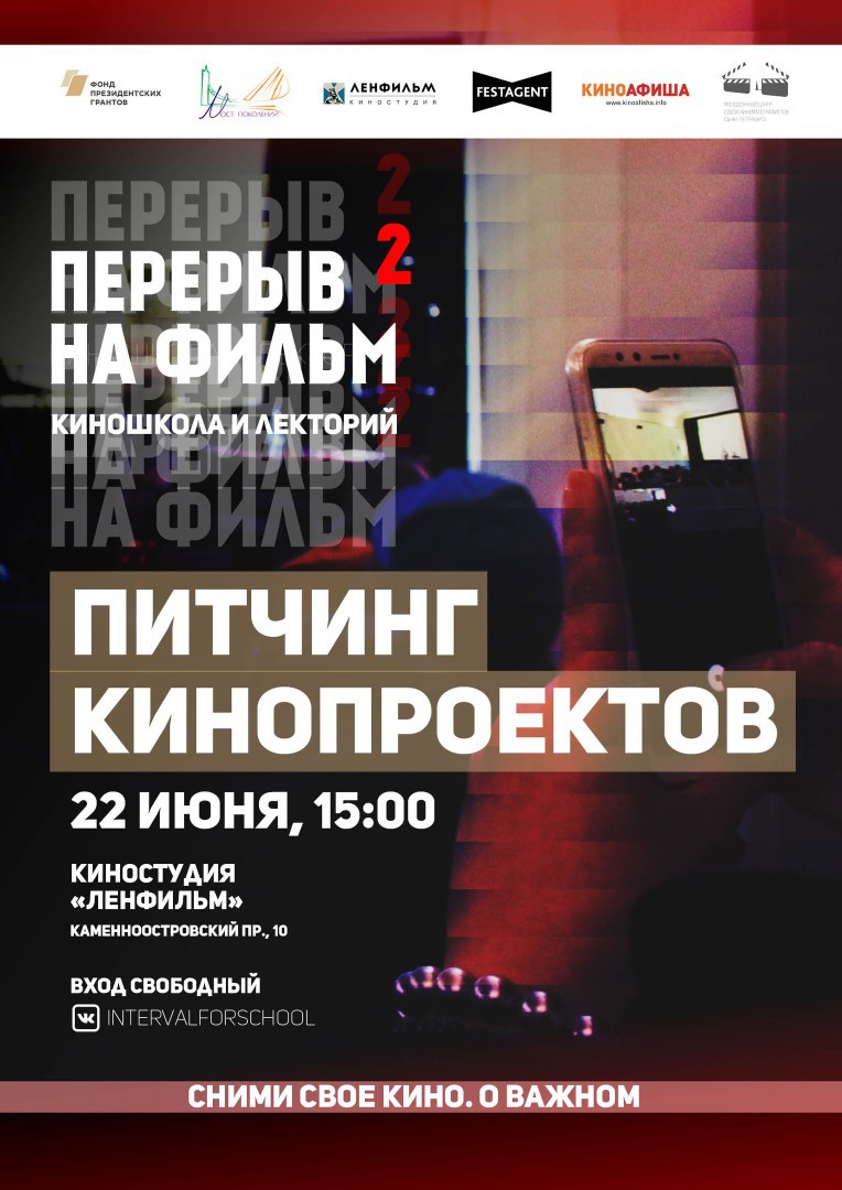 22 июня 2019 года на «Ленфильме» состоится питчинг кинопроектов на военно-историческую тематику – Великой Отечественной и Второй Мировой войн. Участие в нем может принять любой желающий. Итоги будут подведены в тот же день в рамках церемонии награждения кинофестиваля «Перерыв на кино».