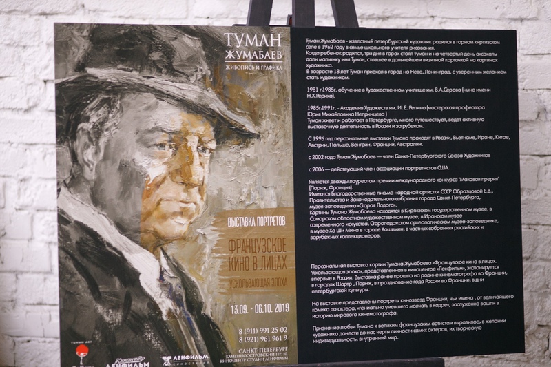В киноцентре «Ленфильм» открылась новая выставка Тумана Жумабаева «Французское кино в лицах. Ускользающая эпоха». Каждый желающий может насладиться экспонатами выставки в кафе «Дранковъ» до 6 октября 2019 года.