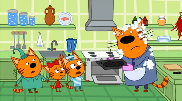 «Три кота: папа за маму» (6 мин). Режиссер: Дмитрий Высоцкий Художник-постановщик: Андрей Сикорский.