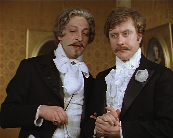 К примеру, Михаил Козаков задумал представить виконта де Розальба весьма странноватым щеголем, с намеком на нетрадиционную сексуальную ориентацию. Андрей Миронов был уверен, что при приемке фильма такой образ не пропустят. Особенно все боялись за сцену, где виконт выходит в парике, с лорнетом и говорит, картавя, Фадинару: «Представьте себе: лужок, пасутся коровки, коровки… бычок. Бык. И все сгребают сено, сгребают. И такой молоденький-молоденький пастушок». Однако чиновники Гостелерадио СССР (фильм снимался по заказу телевидения) ничего подозрительного не заметили…