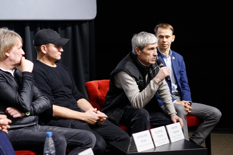 После просмотра зрители смогли задать вопросы режиссеру Игорю Копылову, художнику-постановщику Георгию Мичри, композиторам Максиму Кошеварову и Александру Маеву, а также актерам Сергею Жаркову, Александру Аравушкину и Петру Логачеву.