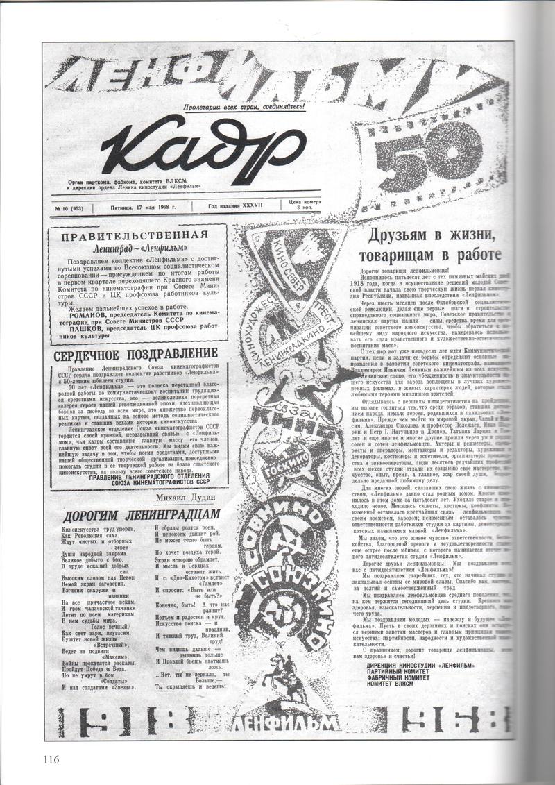 И это были статьи не только на производственные темы, но и размышления о развитии студии и киноискусства в целом.