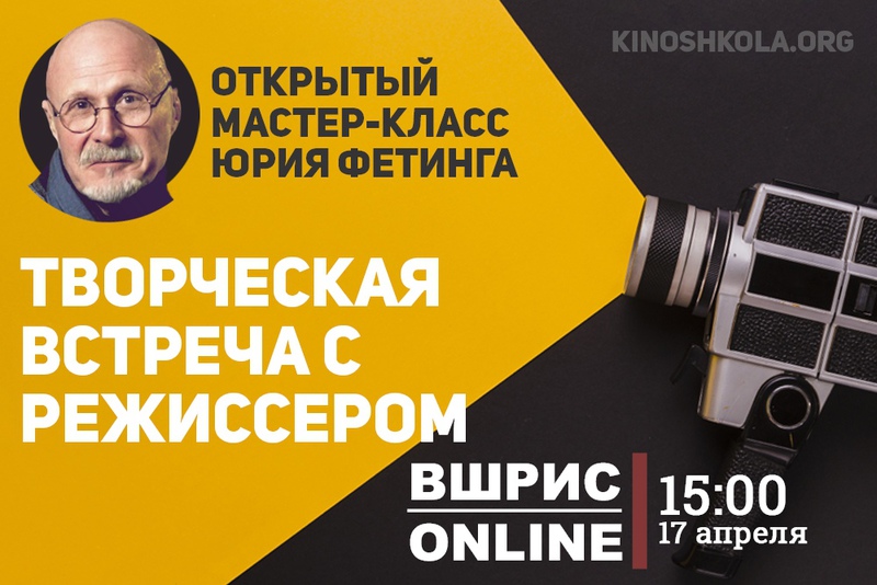 17 апреля (пятница) в 15:00 состоится творческая встреча в режиме он-лайн с кинорежиссером Юрием Фетингом.