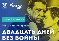 3 июня в 19.30 проект КАРО.Арт и кинокомпания «Ленфильм» приглашает на специальный благотворительный показ картины Алексея Германа «20 дней без войны» в поддержку Фонда борьбы с лейкемией. Перед просмотром в 19.00 все желающие зрители смогут обсудить фильм с кинокритиком, редактором журнала «Искусство кино» Антоном Долиным в прямом эфире инстаграм-канала КАРО.Арт