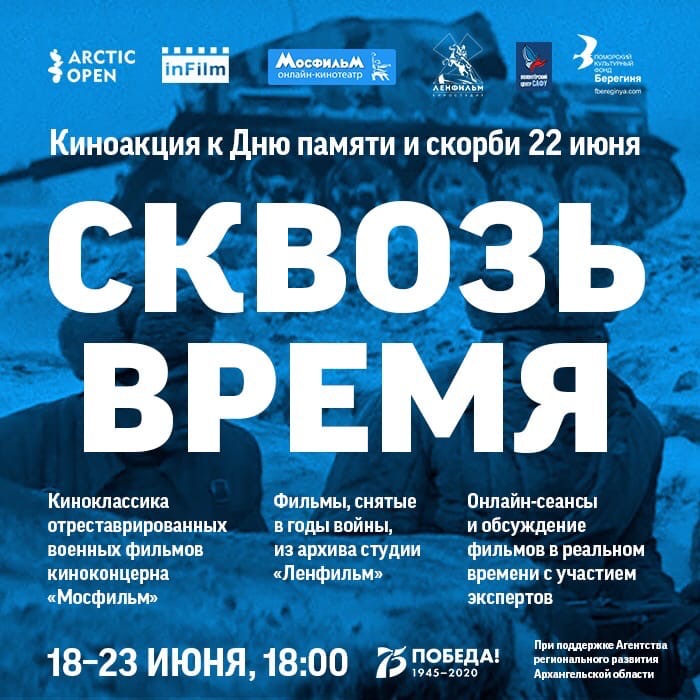Киноакция «Сквозь время» – совместный онлайн проект МКФСА Arctic open, Инфильм, САФУ, при поддержке киностудии «Ленфильм».