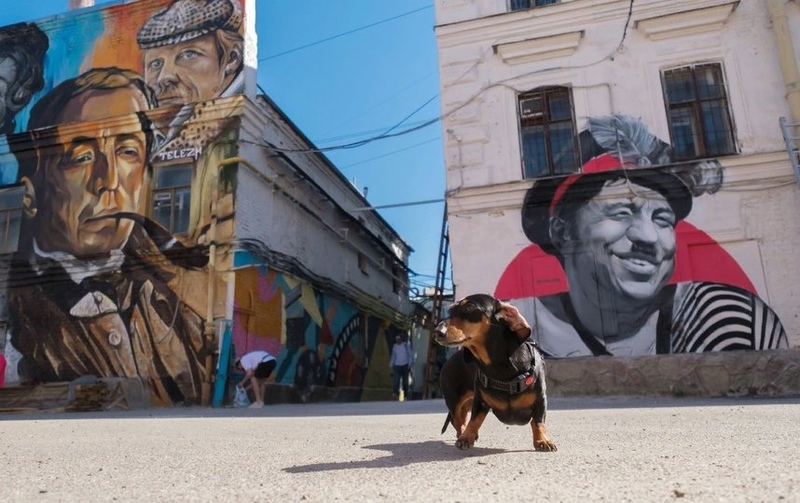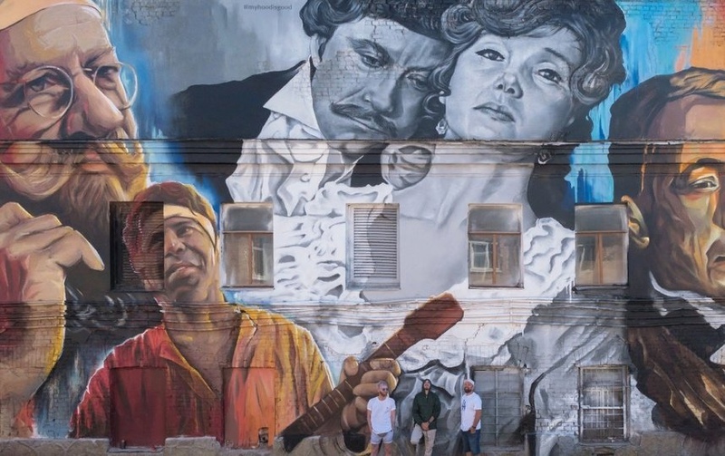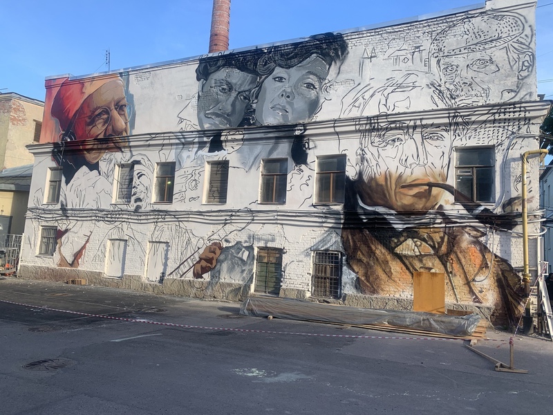 «Я и Илья Ис рисовали Андрея Миронова и Людмилу Гурченко, сыгравших главные роли в «Соломенной шляпке». Мы работаем только в монохроме, поэтому наши герои черно-белые. Некоторые наши работы на других объектах закрасили. Рассчитываю, что двор киностудии не дадут в обиду, и стены «Ленфильма» станут примером для остальных. Я люблю советские фильмы, и рад, что в центре Петербурга появится такое пространство, где можно вспомнить персонажей культовых кинокартин. Я, правда, хотел бы нарисовать героев моего любимого фильма «Собачье сердце», но эта картина была уже «занята» моим коллегой. Миронов и Гурченко из «Соломенной шляпки» – тоже культовые персонажи. Как только появится свободное время, обязательно пересмотрю этот фильм», – рассказал газете «Метро» продюсер HOODGRAFFTEAM Артем Бурж.