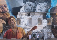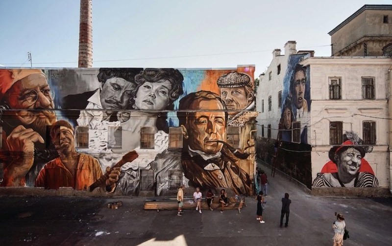 KINO CORNER – успешный пример пространства, доказывающего, что стрит-арт не вандализм, а направление в современном изобразительном искусстве. На четырех фасадах «Ленфильма» за несколько дней появились изображения героев советского кино, кадры из фильмов, абстракции; и выглядит это очень эффектно. А главное – легально и уместно.