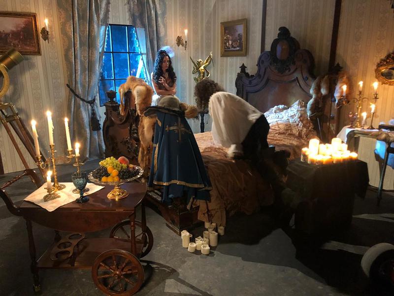 По сюжету на героиню нахлынули флэшбэки, воспоминания. В эпизоде показана сцена съемок исторического кино. В Четвертом павильоне была воссоздана комната в интерьере XVII века, в которой якобы проходят съемки. Старинная мебель, громоздкая дубовая резная кровать… Что это за сцена? Констанция и Д’Артаньян? Это мы уже узнаем в самом сериале.