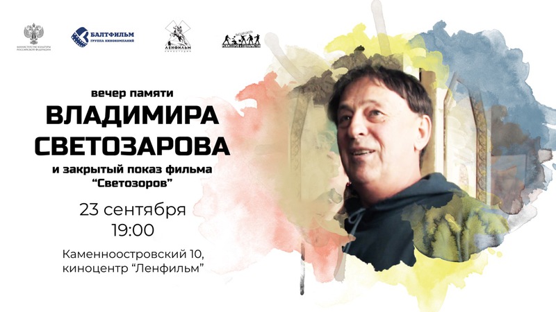 В рамках «Ленфильм-клуба», 23 сентября в 19:00 пройдет закрытый показ документального фильма – «Светозаров» (продюсер Александр Андреев, режиссер Станислав Лебедев) компании «Балтфильм», посвящённый творческому пути этого выдающегося ленфильмовского кинодеятеля. В этот день друзья, коллеги, единомышленники, выпускники мастерской Светозарова и студенты- кинематографисты соберутся в большом зале киностудии «Ленфильм», чтобы поделиться воспоминаниями, поговорить о кино и об искусстве.