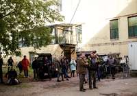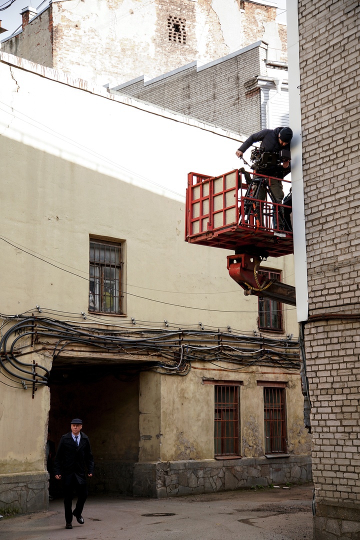 Кино на «Ленфильме» снимают всюду. Не только в павильонах, но и во дворах, в кинозале, на крышах и даже в подвалах. Вот и сейчас дворы «Ленфильма» снова заняты съемочной группой.