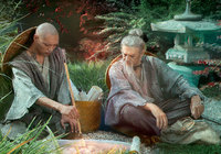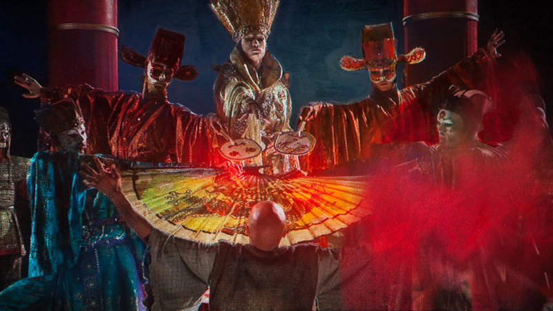 – Бывают такие моменты, когда идешь по отделу реквизита и видишь вещь, которая может тебе помочь; ее и берешь в кадр. Я всегда хожу вместе с художниками в поиске нужного реквизита. Для меня это очень важно: потом, когда я рисую, вещь становится говорящей. Отличие режиссера от режиссера-аниматора, работающего с актерами, в том, что когда я делаю движение с ними, я обращаю внимание прежде всего на выразительность жеста. Допустим, в «Маленьких трагедиях», когда нужно было показать пир Скупого, мы сделали ожившие гобелены. Придворным придумали шляпы-тарелки. В каждой такой шляпе художники соорудили роскошные натюрморты с фруктами и золотыми сосудами. Сначала панорамой снимали стол с этими тарелками (артисты прятались за столом), а затем артисты поднимались и начинали свой танец. С точки зрения значимых фактур можно увидеть, что мир «Скупого рыцаря» соотнесен с гобеленами и вышивками, «Каменный гость», в чем-то являет собой игру «цветовыми массами», изображение в «Моцарте и Сальери» восходит к технике акварели. Важно обратить внимание и на то, как здесь решается в цвете применение золотого шитья, гобеленов и сгущенных теней.
