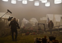 Декорационного строительства требовали и локации под сражения: возведение редутов, рвов, укреплений. Именно поэтому часть съемок проходила в двух павильонах «Ленфильма». Помимо декораций для сражений, был создан бутафорский лес, а все полы павильонов застилала настоящая трава. В этих декорациях, с добавлением большого количества спецэффектов, проходила часть съемок сражения за Нарву. В павильонных съемках были задействованы даже лошади.
