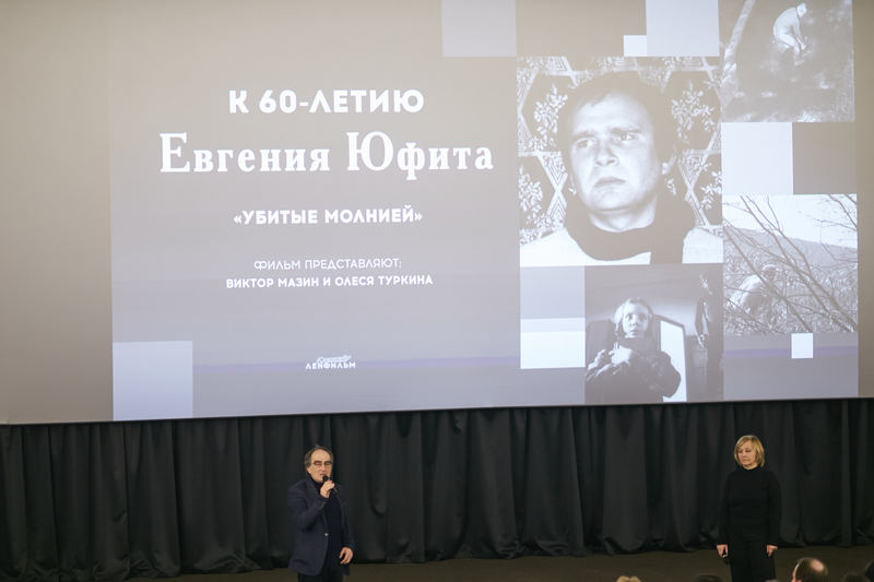 Карьера Евгения Юфита начиналась на Ленфильме, в стенах киностудии он набирался опыта и создавал свою первую полнометражку. Невидимое присутствие автора в зале создавало особенную атмосферу на показе фильма “Убитые молнией”, изображающего на экране позитивную деградацию и не только…