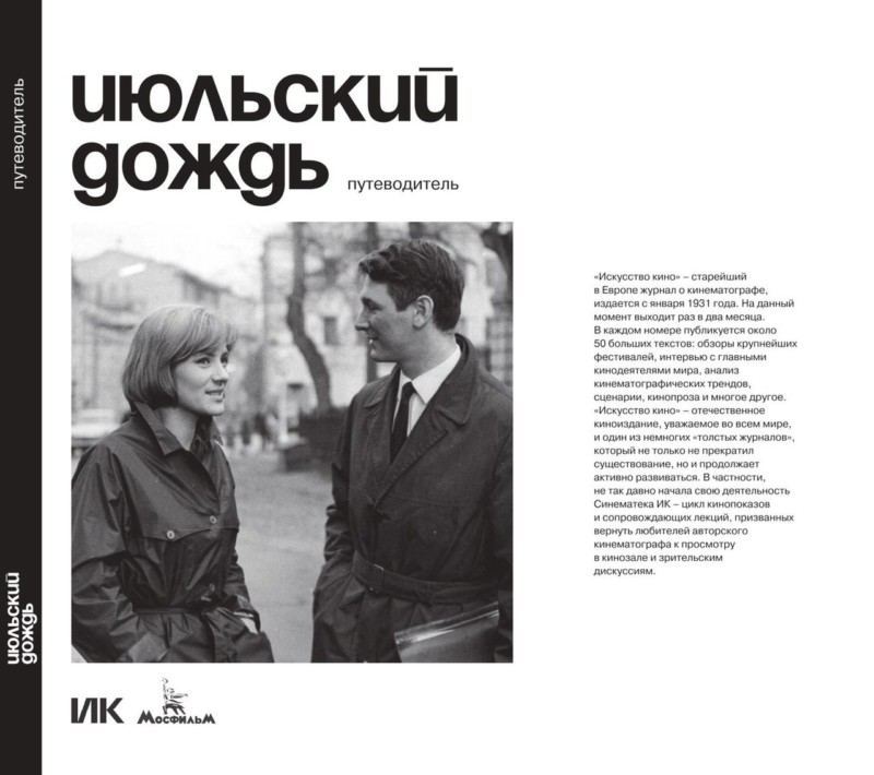 «Июльский дождь. Путеводитель» — первый сборник материалов о фильме Марлена Хуциева «Июльский дождь». Благодаря этой книге читатели смогут проследить через десятки документов и воспоминаний, как день за днем, месяц за месяцем создавалась легендарная кинолента, оказавшая большое влияние на развитие отечественного кино.