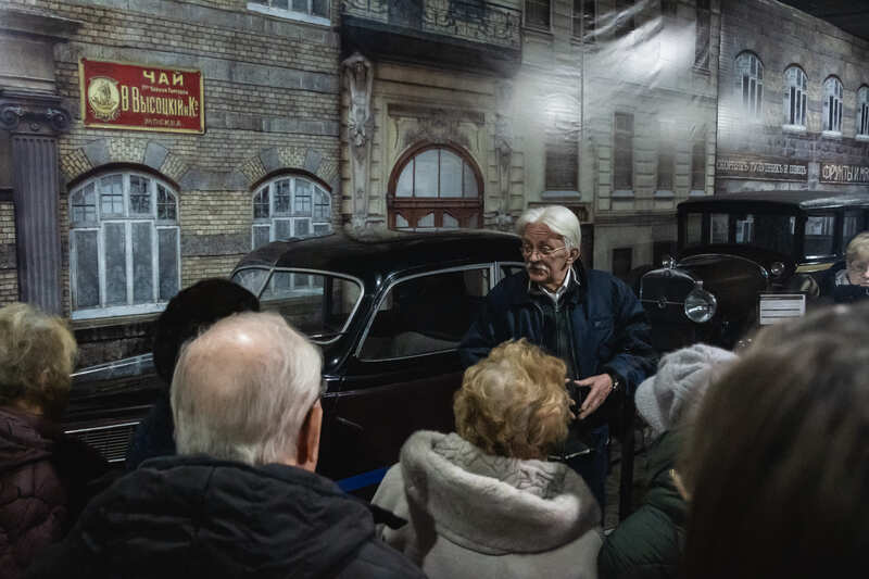 Погружение в мир кинематографа продолжилось в павильонах, где ветераны увидели уникальную историческую кинотехнику; декорации, созданные для съемок фильма «Чудо-юдо»; познакомиться с коллекцией ретро-автомобилей, которые помнят съемочные площадки разных эпох. Эмоциональный отклик вызвал просмотр одного из новых фильмов киностудии – короткометражного фильма «Трезорка» – трагической и трогательной истории о псе Трезоре, героизме и стойкости ленинградцев.