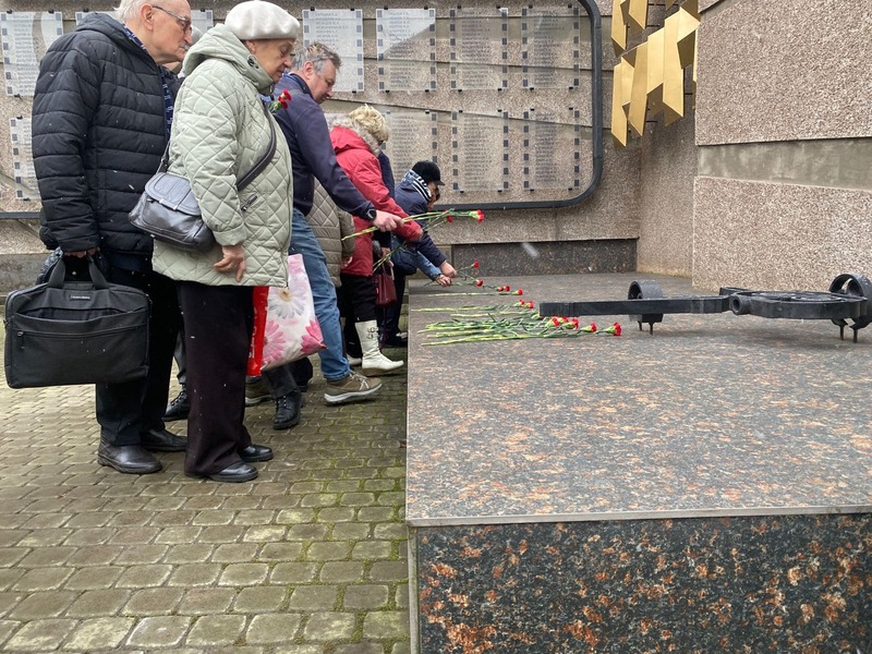 Особо торжественной нотой стало возложение цветов к стеле «Героям Ленфильма» — монументу, увековечившему память сотрудников киностудии, ушедших на фронт в годы Великой Отечественной войны. Ветераны возложили алые гвоздики к подножию стелы и почтили память погибших кинематографистов миной молчания.