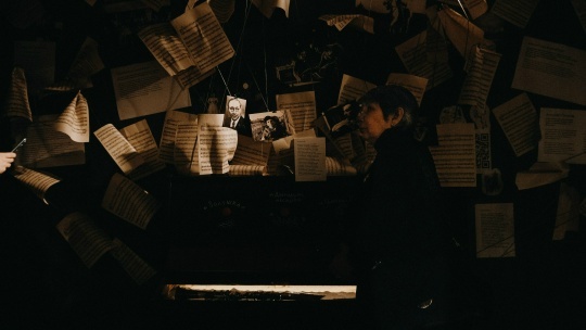 Отдельно надо сказать, что на выставке представлены не только предметы, связанные со съёмками фильма, такие как костюмы, предметы бутафории, некоторые элементы декорации, эскизы костюмов, но и крайне интересный материал, который публикуется впервые. Это то, что мы можем назвать «бэкстейдж»».